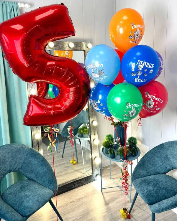 Именинник в окружении своеобразной рамки из красных воздушных шаров – такая фотография станет достойным сувениром на долгую память.
