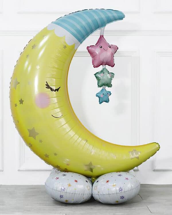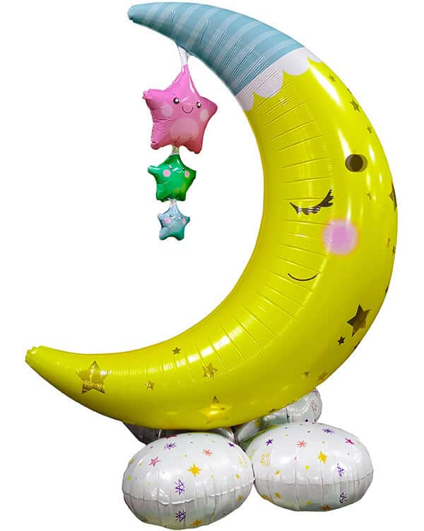 Воздушный шарик в виде полумесяца можно использовать для декора интерьера. Если повесить его высоко на стену или даже укрепить на потолке, получится серп луны, если окружить шарами-звездами, — ясная звездная ночь.