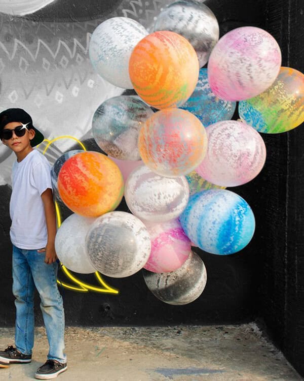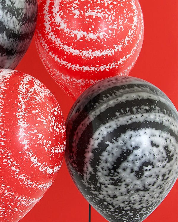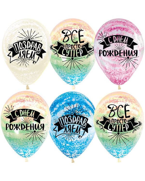 Воздушные шары из латекса типа агат напоминают издали самодельные – настолько реалистичны разводы на их поверхности, имитирующие мрамор или детский рисунок. Такие шарики абсолютно неидентичны, вряд ли найдется другая аналогичная партия или даже штука.