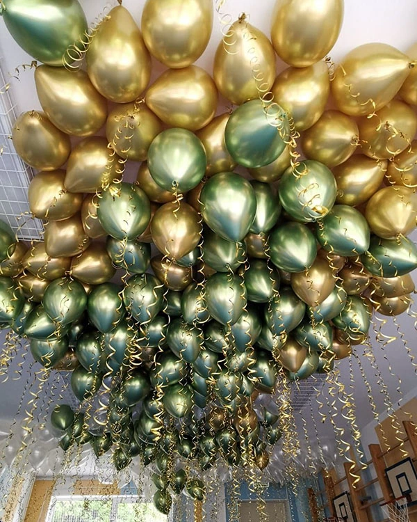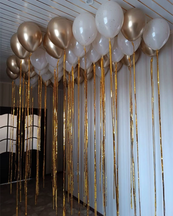 Корпоративный праздник проводится в деловой обстановке? Офис или конференц-зал можно красиво оформить воздушными шарами цвета металлик, золото, серебро.