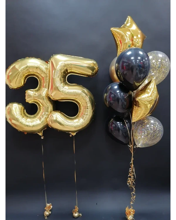 Фольгированный воздушный шар в виде цифры с клапаном. Фольгированный шар способен долго летать из-за большой плотности, нежели латекс. Когда шарик сдулся, вы можете поддуть его гелием или воздухом, и он снова будет как новый.
